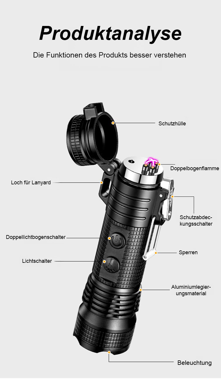 Multifunktionale Taschenlampe mit Elektroschock und Zündung