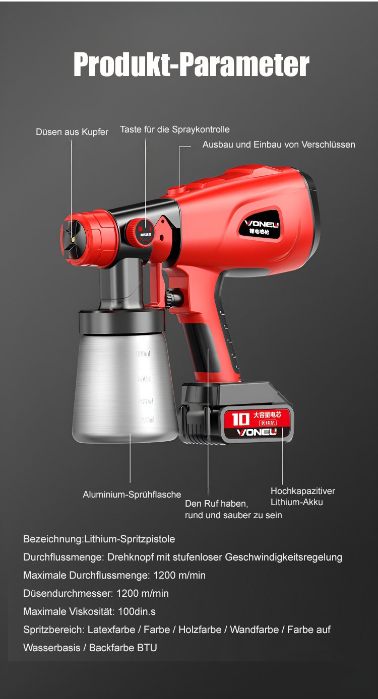 Kleine wiederaufladbare elektrische Lithium-Farbspritzpistole
